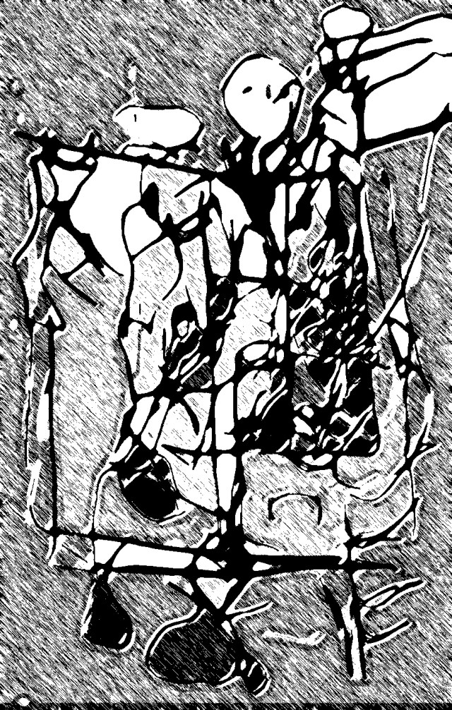 ALS DAS KIND HERANWUCHS … Blind-Kohlezeichnung wie oben, auf den Kopf gestellt, digital bearbeitet (c) gerda kazakou 04-2019