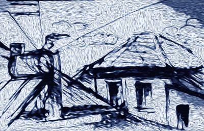 Skizzieren im Tavernenhof (vier Skizzen, fotografiert und bearbeitet)