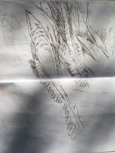 Skizzieren im Tavernenhof (vier Skizzen, fotografiert und bearbeitet)