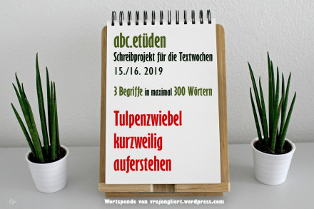 Noch eine hoffentlich kurzweilige Etüde zur Tulpenzwiebel. Danke dir, Christiane, für die Einladung, die Rundum-Betreuung und die gelungene Einladungskarte! Danke dir, Veronika, für die Wortspende.