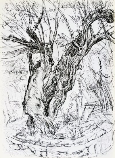 derselbe Baum, Tintenstift-Bleistift-Zeichnung, 11-3-2019