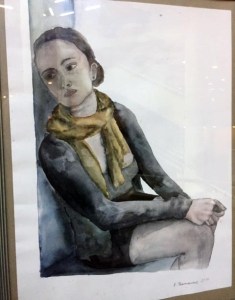 Am gestrigen Abend waren wir (Magda und ich) anschließend an unser wechselseitiges Portraitieren bei einer Ausstellungs-Eröffnung im Kulturzentrum von Kalamata. Die Ausstellenden gehören zur Familie unserer gemeinsamen Freundin Panagiota. Sie ist Künstlerin, ihr Mann auch, aber nicht sie stellte aus, sondern ihr alter Vater, der ein erfolgreicher autodidaktischer Maler von Seestücken ist, und zwei Nichten – Töchter von Panagiotas Schwester und Bruder Dimitris Tzamouranis, der seinerseits ein erfolgreicher in Berlin lebender Künstler ist. Die beiden noch sehr jungen Frauen studieren Kunst, die eine in Griechenland, die andere in Deutschland. Ob es leicht ist, angesichts dieses schwergewichtigen Familienerbes den eigenen Weg zu finden?