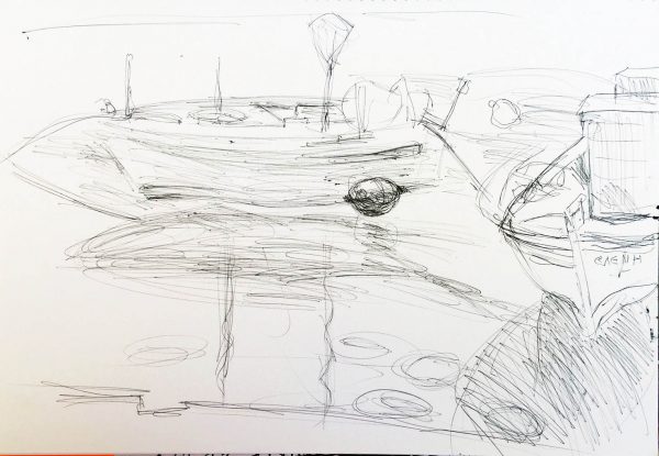 Küste und Fischerboote in Kitries (Kugelschreiber-Skizzen)