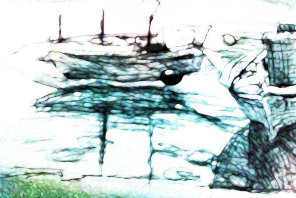 Küste und Fischerboote in Kitries (Kugelschreiber-Skizzen)