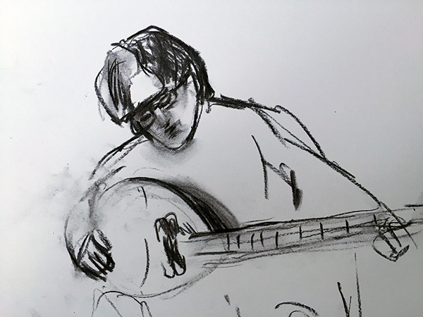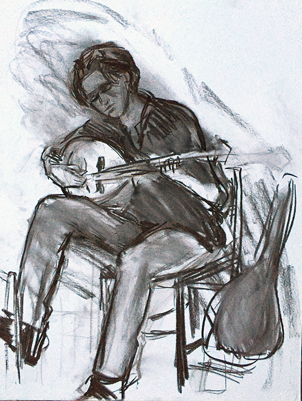 Heute machte ich noch drei Skizzen vom Bouzouki-Spieler. Leider sind es vorerst die letzten. Ich machte ihn jünger als er ist, nicht absichtsvoll, sondern vielleicht, weil es mein Sohn ist und es mir immer noch schwer fällt, ihm sein wirkliches Alter zu geben.