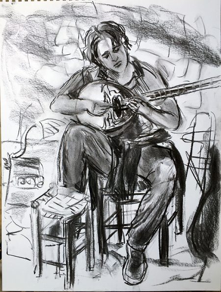 Bouzouki-Spieler 4-6 (Kohlezeichnungen)