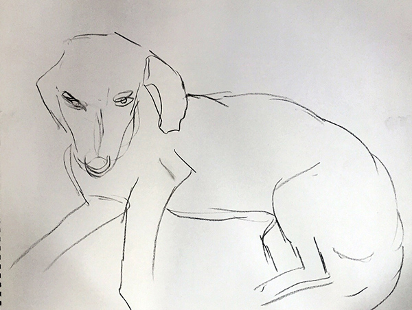 Wunderbare Verwandlung und Neubearbeitung der Hundeskizze, liebe Gerda. Ich verstehe, warum du die Arbeit mit Kohlestift vorziehst.