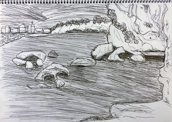 ← Blick auf Akroyiali (Bleistift-Kuli-Skizze, Licht-Schatten-Fotografie und Bearbeitungen)