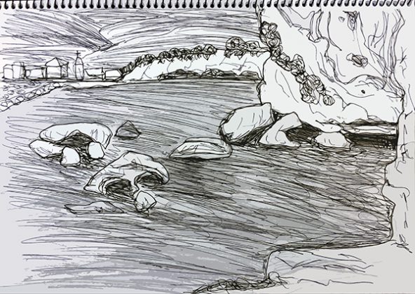 ← Blick auf Akroyiali (Bleistift-Kuli-Skizze, Licht-Schatten-Fotografie und Bearbeitungen)