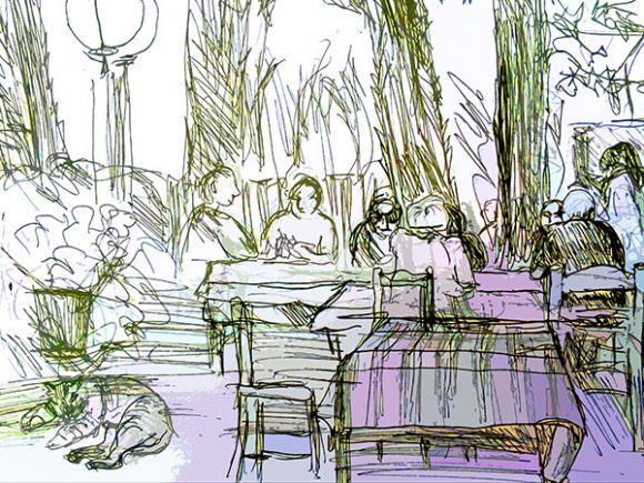 In der Taverne „Argo“ (Kuli-Bleistift-Zeichnung, digitale Bearbeitungen als Dia-Show)