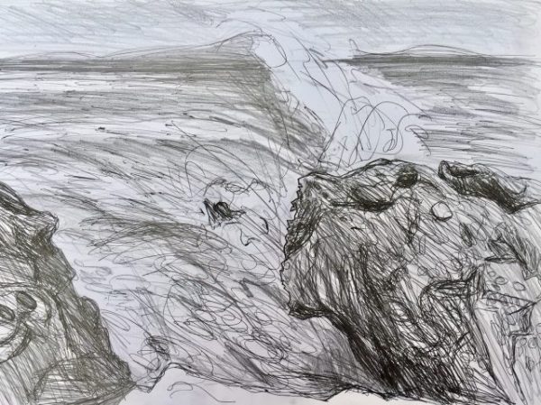 ← Felsvorsprung mit schäumendem Meer (Skizze)