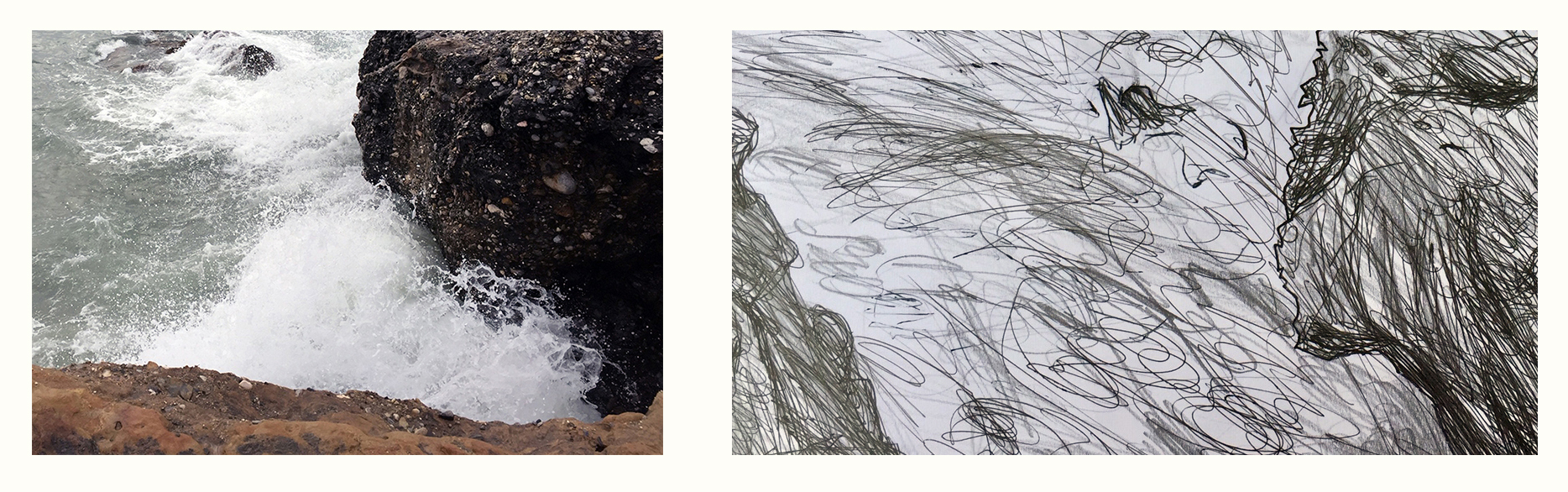 Gestern versuchte ich, den Anprall der Wellen an meinen Felsenvorsprung zu zeichnen – das Ergebnis zeigte wenig von meinem Erleben.