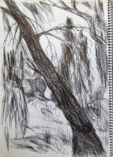 ← Waldstück und Durchblick durch die Küche (zwei Zeichnungen. Bemerkungen zu Motivwahl und Bildaufbau)