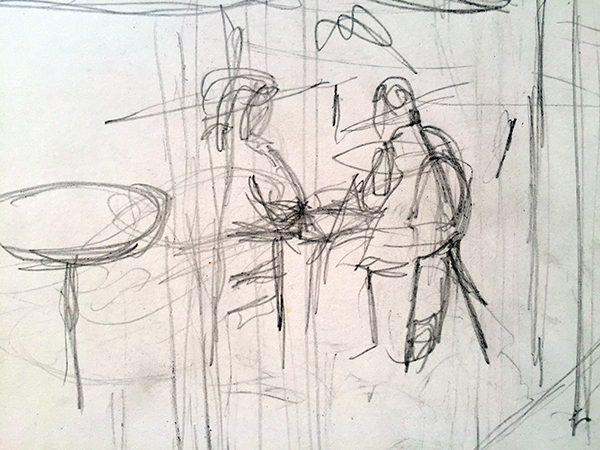 Hier Ausschnitte der letzten Skizzen. Wie unterschiedlich ist die Strichführung!
