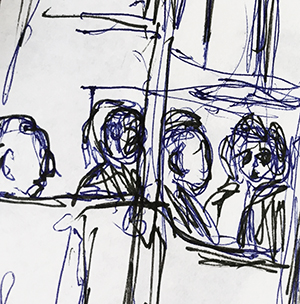 Liebe Gerda, du hast so viel in den letzten Tagen hier veröffentlicht, dass ich gar nicht nachkomme, also bleibe ich jetzt erst einmal hier, bei deinen neueren Zeichnungen und den dazugehörigen Überlegungen, die ich nicht nur gut nachvollziehen kann, weil ich es teilweise von mir selbst kenne, sondern auch durch deine Beispiele, die so gut gewählt sind. Mal empfindest du dich als Teil des Ganzen, bist entspannt, mal nervös, unruhig, eher beobachtend – nun werde ich deine Zeichnungen noch einmal mit anderen Augen betrachten!