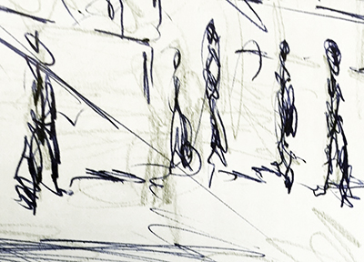 Skizzieren von Menschen in ihrer Umwelt. Wie wirkt sich meine Befindlichkeit aus?