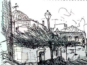 Kaffeepause in Kalamata. Serie „Mensch und Umwelt“ (Skizze)