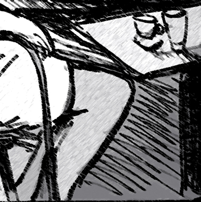 Kaffeepause in Kalamata. Serie „Mensch und Umwelt“ (Skizze)