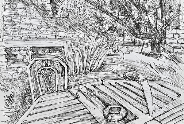 ← Gartenszene: Perspektivwechsel (Zeichnung, Serie Mensch und Umwelt)