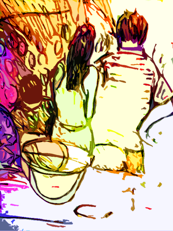 Jahresabschlussfeier in Lysos Garten (zwei Skizzen, Serie „Mensch und Umwelt“)