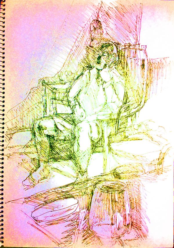 ← Einer sieht fern und lernt italienisch (Skizze)
