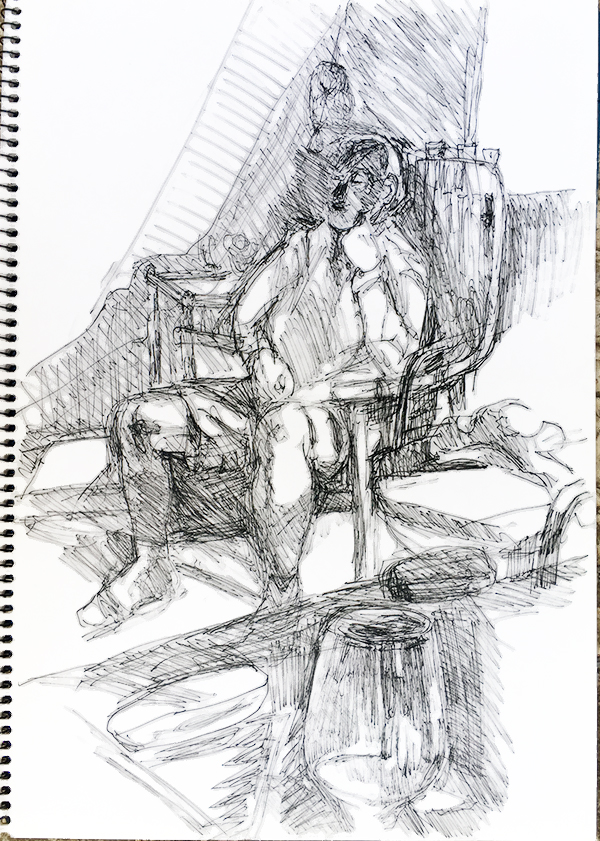 ← Einer sieht fern und lernt italienisch (Skizze)