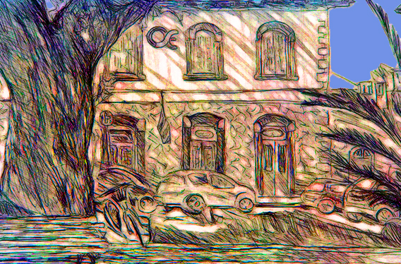 ← Das alte Stationsgebäude von Kalamata (Fineliner-Skizze)