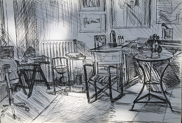 Ecke des Ateliers (Zeichnung, Licht-Schatten-Fotos, Bearbeitungen)