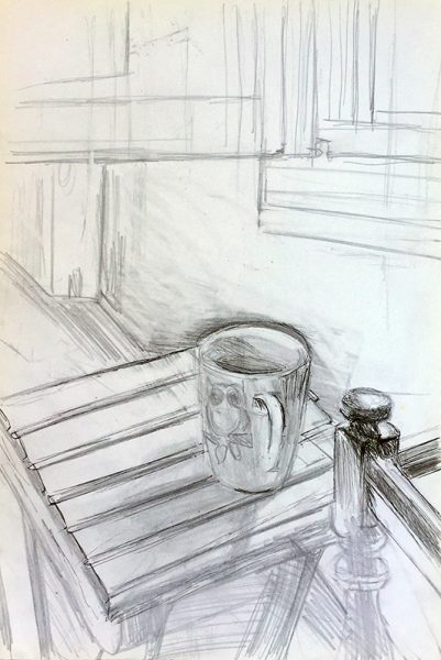 ← Wenn das Licht zu schnell für die Zeichnerin ist (Skizze mit Kaffeebecher und Hocker)