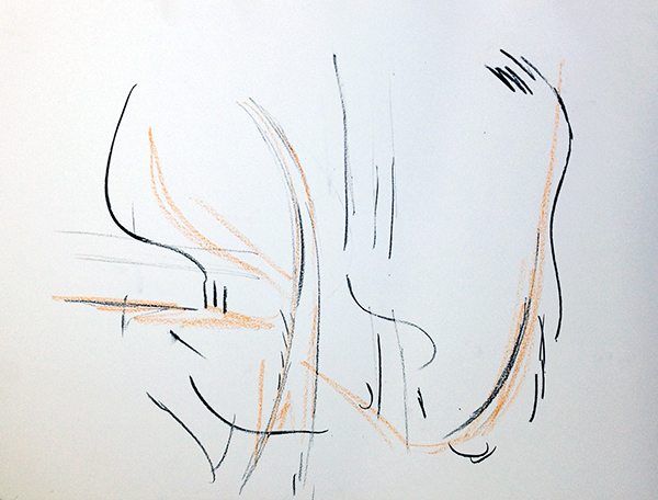 Liebe Gerda, ich bin kein Künstler und finde vielleicht nicht die richtigen Worte, aber das empfinde ich bei Deinen momentanen Zeichnungen: das Zeichnen nach der Natur ist doch wahrscheinlich für jeden Künstler der Beginn seines Tuns egal ob direkt in der Natur, wo alles Modell ist oder im Atelier? Die jetzige erlangte Souveränität im Umgang , vor allem das Spontane, den Stift überall sofort zur Verfügung zu haben, die von mir so geliebten Skizzen(bücher,zettel,blätter) wie ein Fotograf bei einer Momentaufnahme füllen zu können, empfände ich auch als eine Art von Freiheit. Die Erdung von der Du sprichst, birgt für mich auch die Freude am eigenen Können.