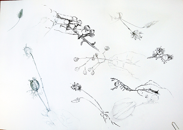 Die Melodie fand keine unmittelbare Fortsetzung. Vielmehr tat ich nun, was ich seit meinen Anfangsjahren nicht mehr getan hatte: nach der Natur zeichnen. Es entstanden zarteste Bleistift- und Federzeichnungen.  Das war im Oktober 2017.
