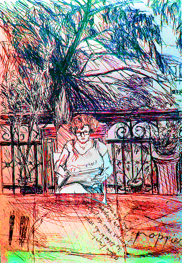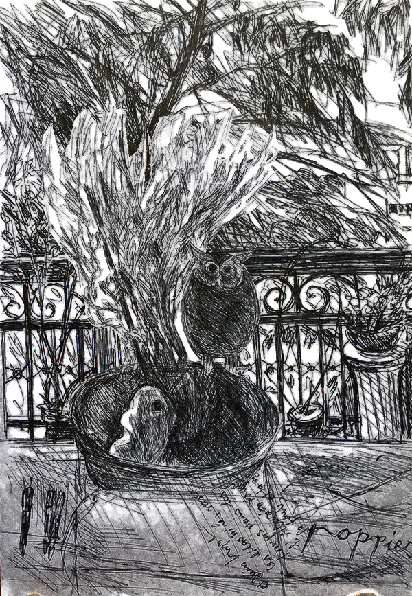 Schmunzelnd las ich all Deine Worte, liebe Gerda, und begleitete Deine Schritte von Zeichnung zu Zeichnung. Durch und durch kreativ probierst Du aus und es gefällt mir, was Du digital bearbeitend hier machst und doch finde ich Zeichung Nr. 1, in Abwesenheit von Pflanzschale und digital eingesetzten Freundinnen am allerschönsten.
