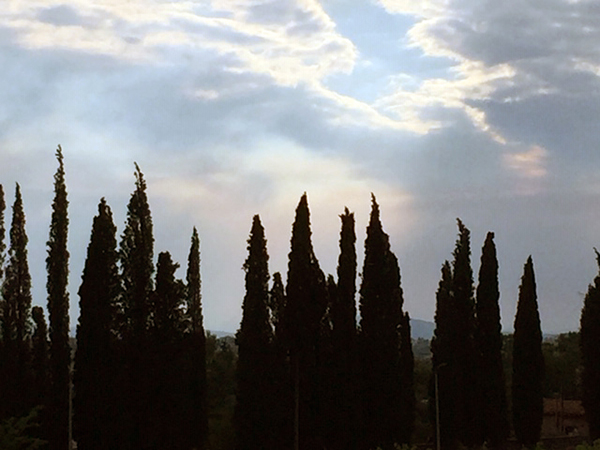 Die Zypressen vor den Feuerwolken: beeindruckend!
