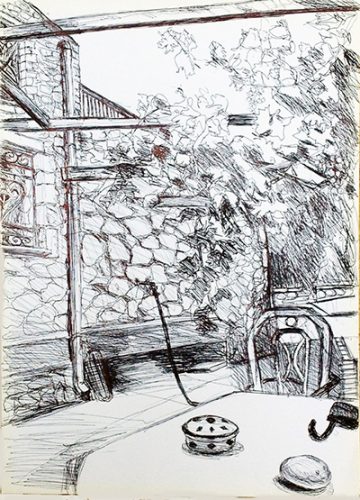 ← Die Rückseite des Hauses (Zeichnung 2019-08-02, mittags)