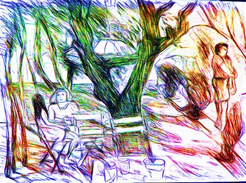 Deine erste Zeichnung ist mein Liebling, liebe Gerda, sie wirkt so farbig und lebendig, so lebensfroh, obwohl die Farben nur in Deinen Worten vorkommen. Mein Geist transportiert sie scheinbar in Deine Skizze hinein 🙂 Wundervoll!
