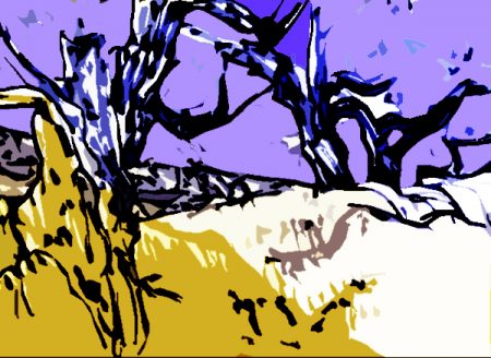 Morgens mit Filzi im Olivenhain (Zwei Skizzen, acht Bearbeitungen)