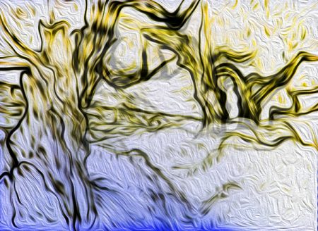 Morgens mit Filzi im Olivenhain (Zwei Skizzen, acht Bearbeitungen)