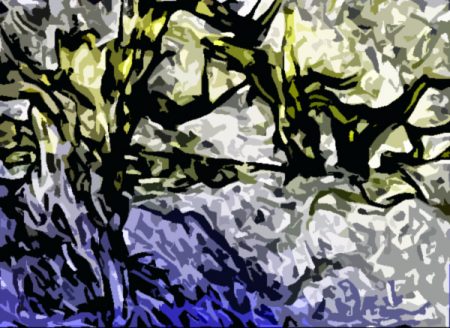 Morgens mit Filzi im Olivenhain (Zwei Skizzen, acht Bearbeitungen)