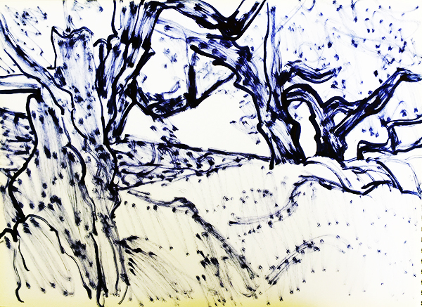 Morgens mit Filzi im Olivenhain (Zwei Skizzen, acht Bearbeitungen)