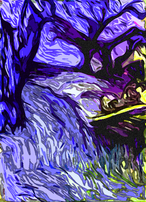 Morgens mit Filzi im Olivenhain (Zwei Skizzen, acht Bearbeitungen)