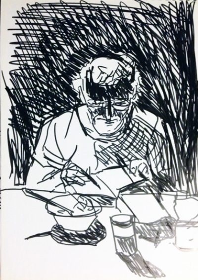 Nächtliches auf der Turmterrasse (Skizzen mit Filzstift, 2019-08-16)
