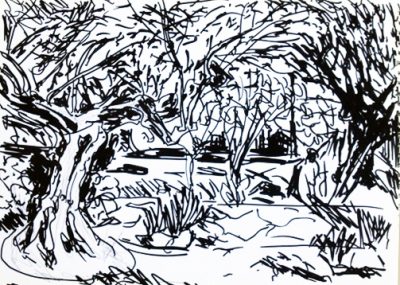 Neuer Filzstift – neue Zeichenfreuden. „Zwei Ölbäume im Garten“ (Zeichnung 2019-08-16)