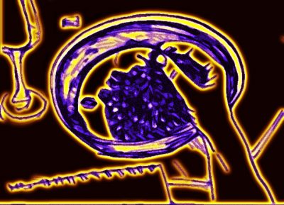 Meine Hand mit blauen Trauben (Zeichnungen mit Filzstift und Kuli: blind, sehend, gepaust, bearbeitet).