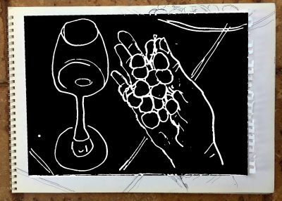 ← Meine Hand mit blauen Trauben (Zeichnungen mit Filzstift und Kuli: blind, sehend, gepaust, bearbeitet).