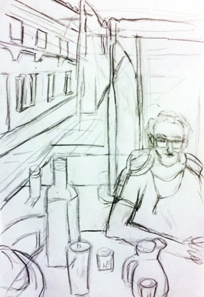 ← Mann am Tavernentisch (Zeichnung, Bearbeitungen)