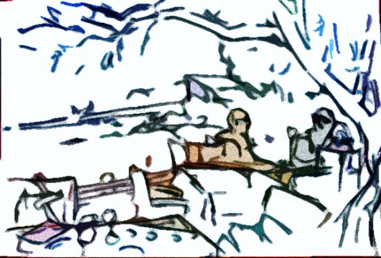 Serie „Mensch und Umwelt“. Idylle in der Taverne am Meer (Skizze, Bearbeitungen)