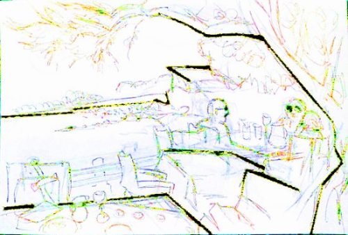 Serie „Mensch und Umwelt“. Idylle in der Taverne am Meer (Skizze, Bearbeitungen)