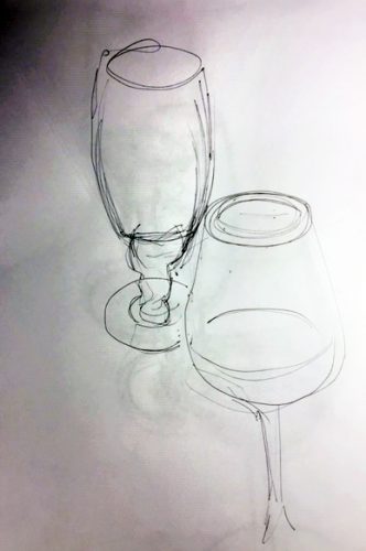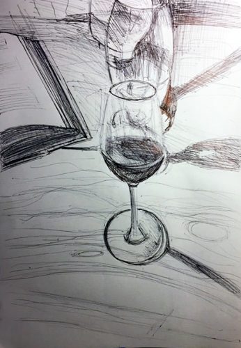 Auf der nächsten Zeichnung greife ich nach meinem Weinglas.
