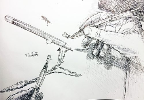 Zaubertricks mit Schnur, Stift und nächtlichen Besuchern (Zeichnungen, 1.-2.9.2019)
