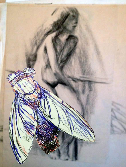 Die Fliege (3-Farbenzeichnung nach Foto)